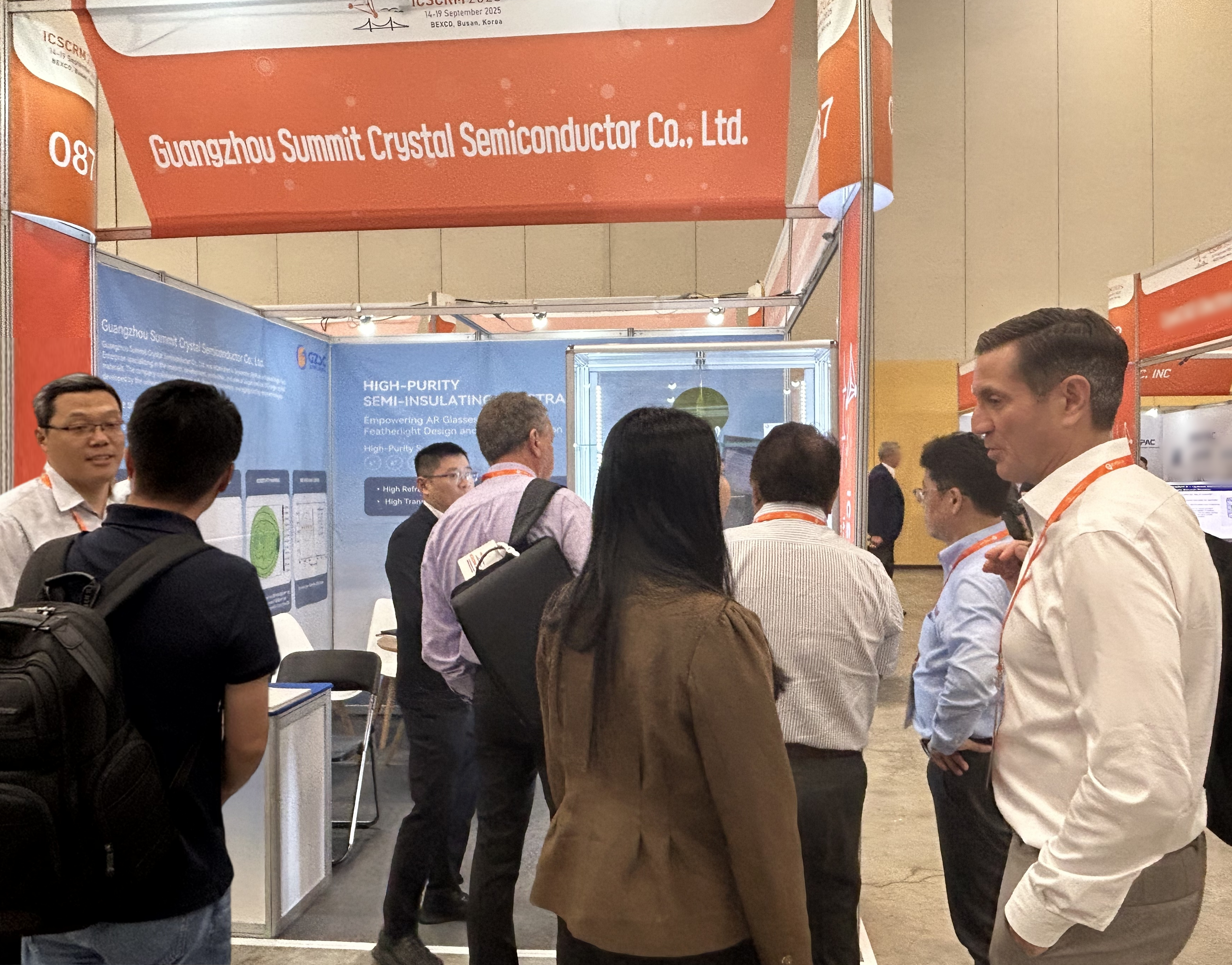 广州南砂晶圆半导体技术有限公司(以下简称“南砂晶圆”) 于全球碳化硅半导体领域的盛会——2025年国际碳化硅及相关先进材料会议(ICSCRM 2025)087号展位精彩亮相,重点展示了12英寸与8英寸碳化硅衬底方面的技术成果,吸引了众多国内国专家和合作伙伴的关注与交流。